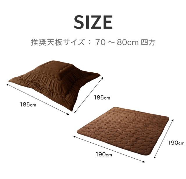 幅185×奥行185cm(推奨天板サイズ70〜80cm四方)