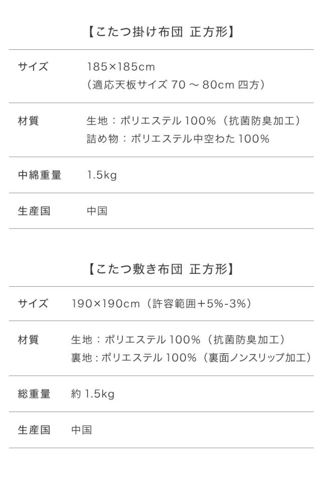 掛け敷きセット 正方形 | 掛け敷きセット 長方形 | |
