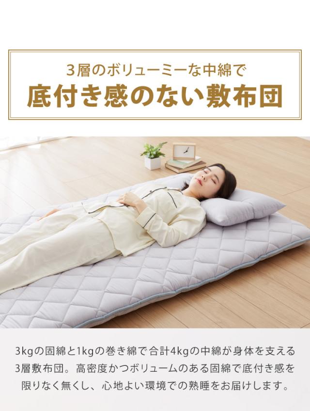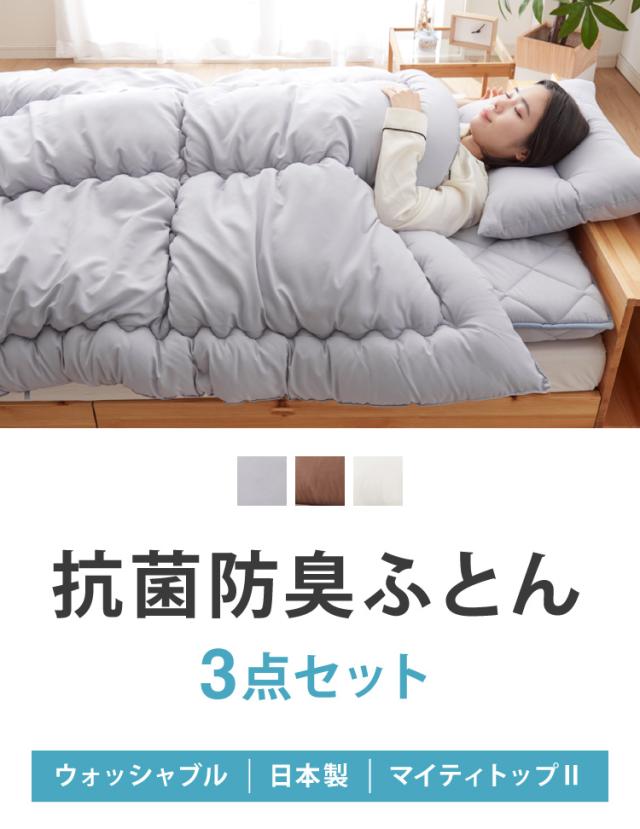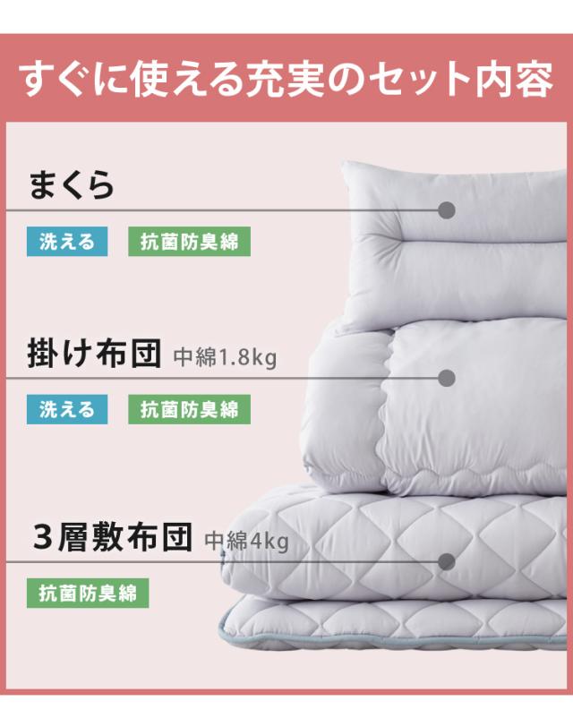 日本製 抗菌防臭 増量1.8kg 布団3点セット シングル 洗える 三層敷布団 掛け布団 頸椎安定型 枕 抗菌 防臭 防ダニ 布団セット 洗濯OK ほこりが出にくい ふとん セット 一人暮らし 新生活 来客【送料無料】