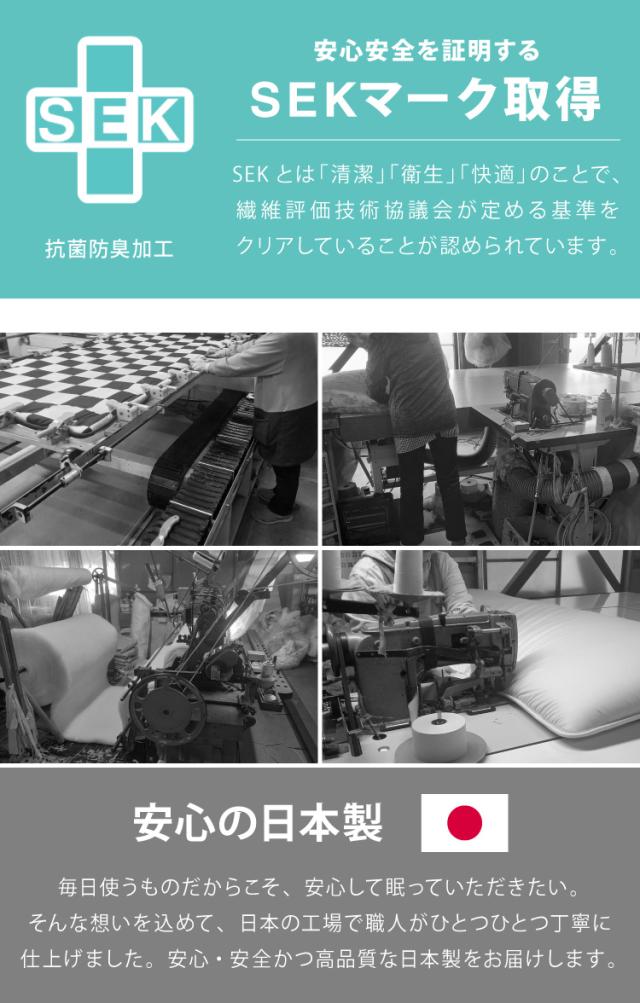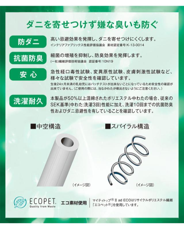 詰め物:ポリエステル綿100%(抗菌防臭防ダニ綿 テイジン マイティトップII(R)使用)1.8kg