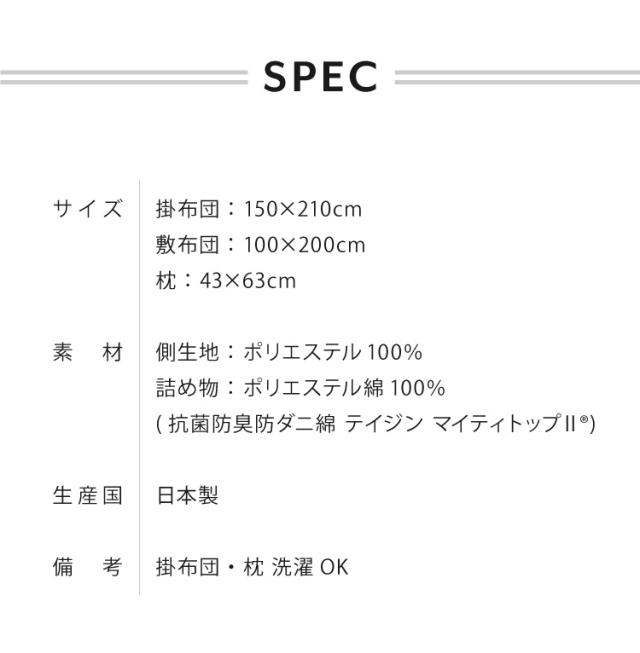※掛け布団は品質表示がご家庭洗濯機で洗えない表記になっております。