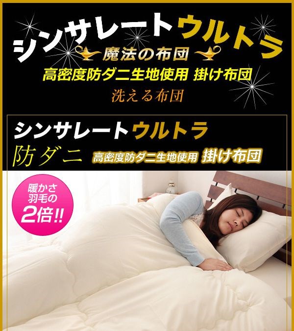 掛け布団 シンサレート ウルトラ ダブル 日本製 シングルロング 洗える マイティトップ使用 国産 防ダニ 抗菌 防臭 羽毛布団の2倍 掛布団 布団 テイジン【送料無料】