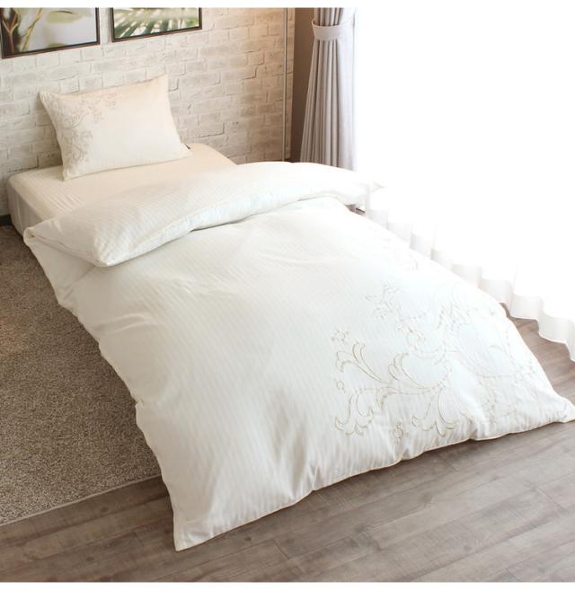 肌触りの良い高級感のあるサテンストライプに光沢がある刺しゅうを施しました。