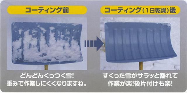 除雪スコップ・スノーダンプ等の雪離れ性の向上。