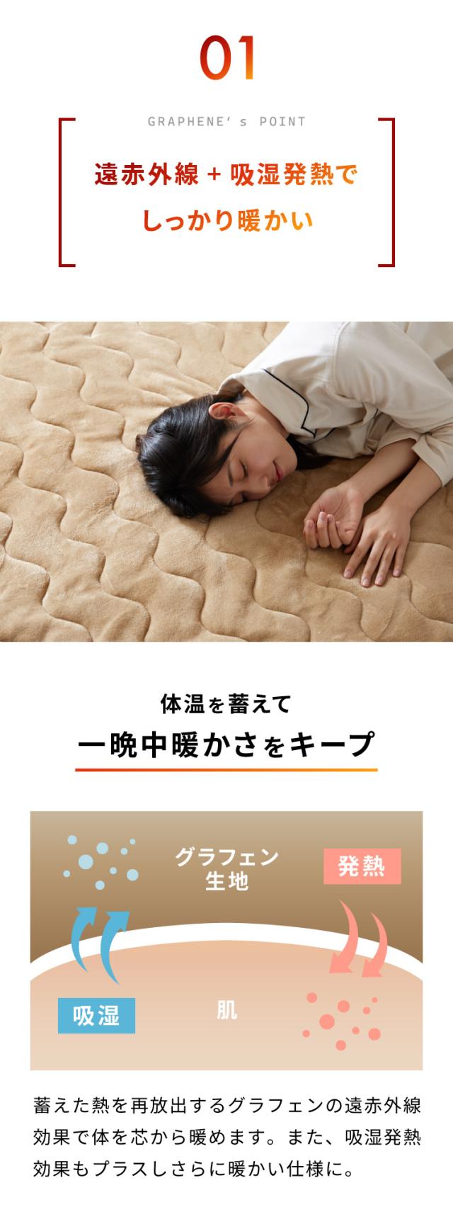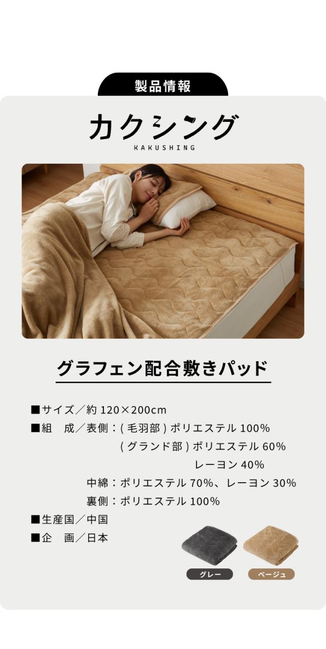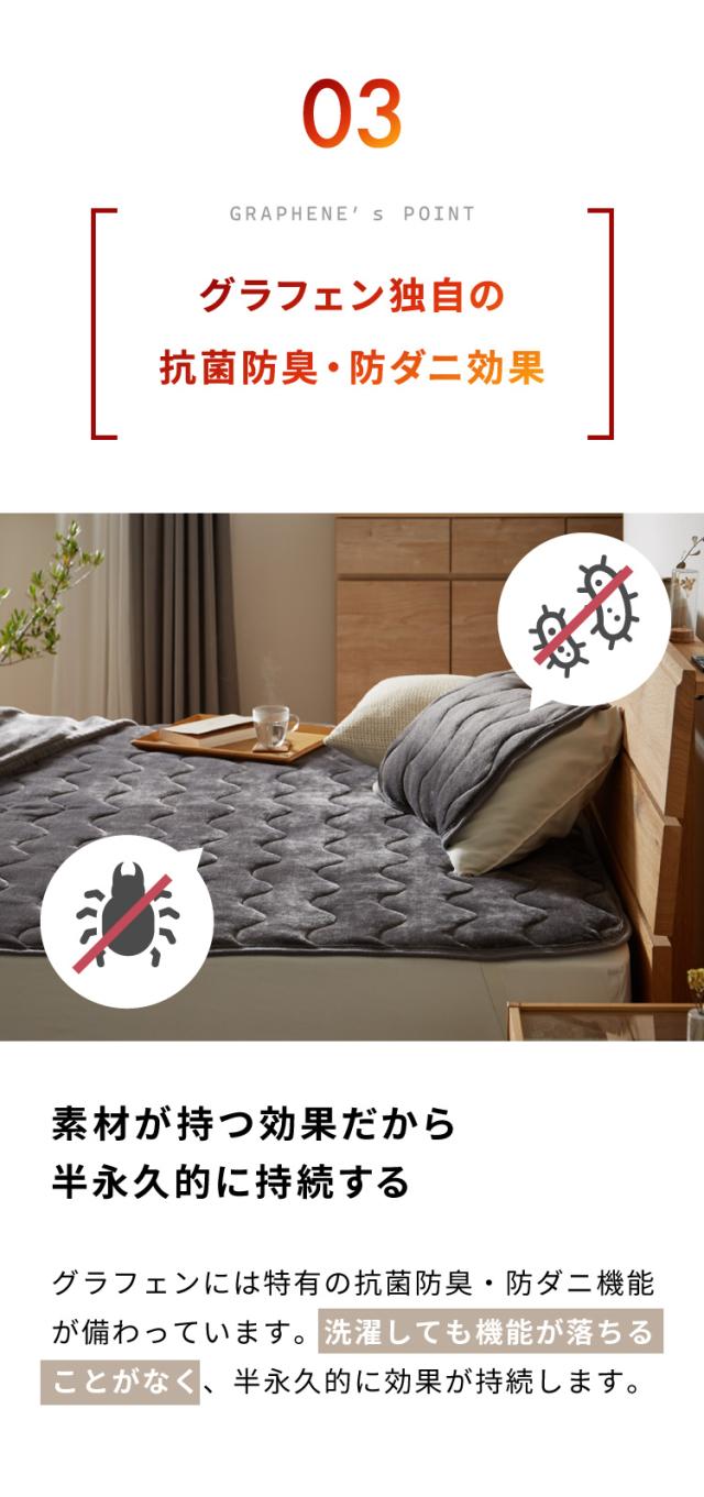 グラフェン素材、炭素素材、グラフェンフランネル、敷パッド、ベッドパッド、除電、保温、保湿機能、洗濯可能、丸洗い、とろける生地、グレー、ベージュ、かわいい、ふわふわ