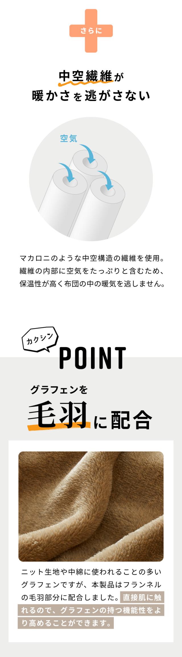本製品はそんなグラフェンをフランネルの毛羽部分に配合。