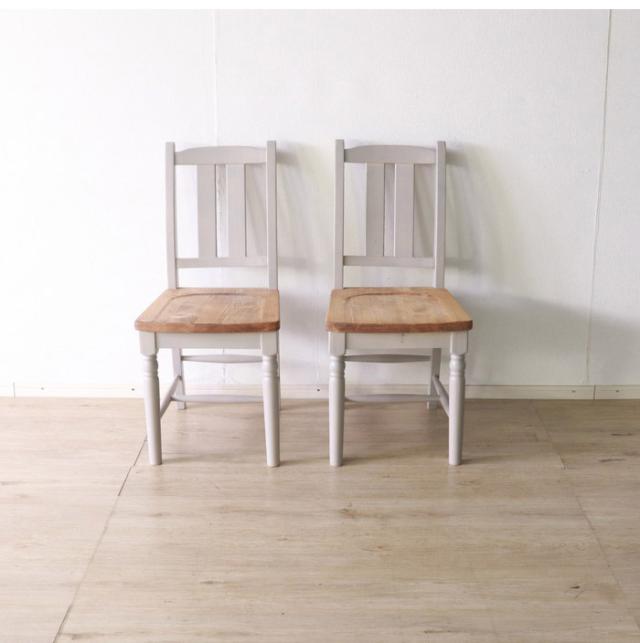 ダイニングチェア2点セット 北欧調 幅40cm 2脚 アンティーク調 完成品 いす グレー ホワイト欧米 パイン材 ダイニング おしゃれ フレンチカントリー 天然木 無垢 木製(代引不可)【送料無料】