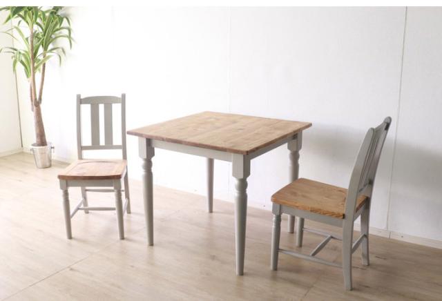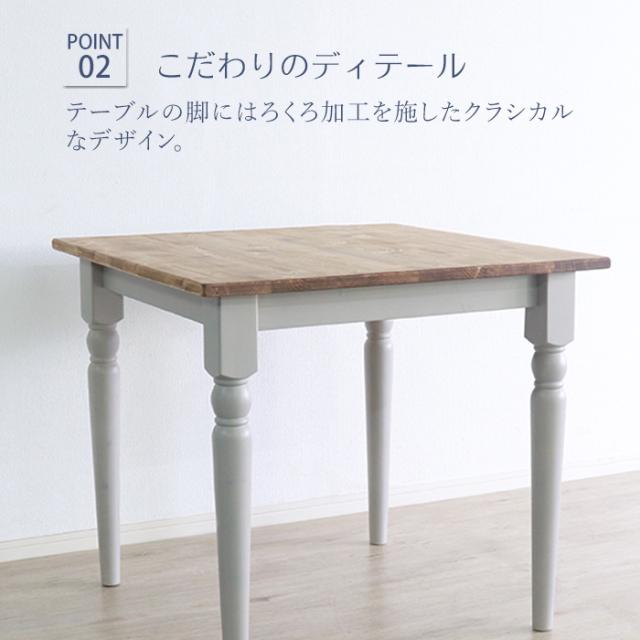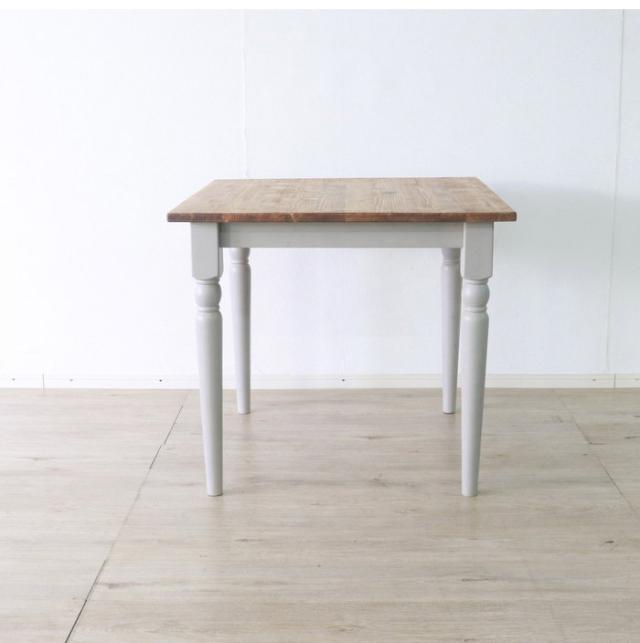 ダイニングテーブル 北欧調 幅80cm アンティーク調 組立品 机 グレー ホワイト欧米 パイン材 ダイニング おしゃれ フレンチカントリー 天然木 無垢 木製 ラベンダー(代引不可)【送料無料】