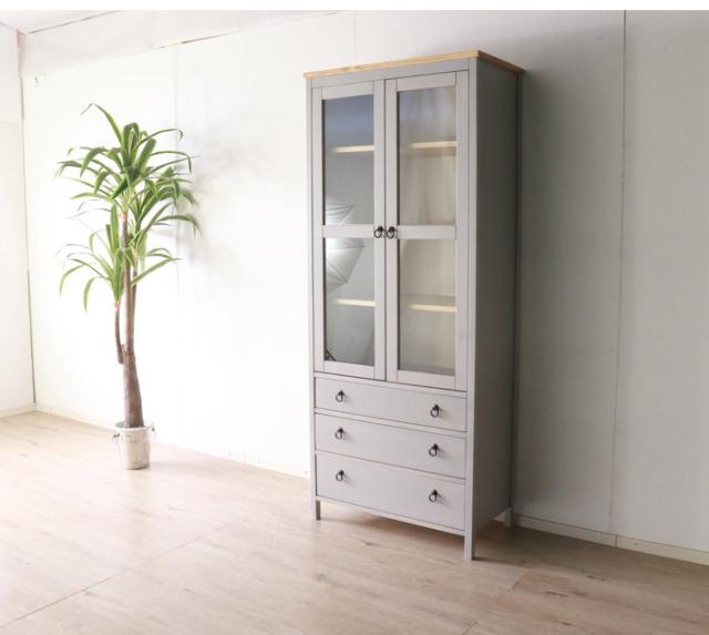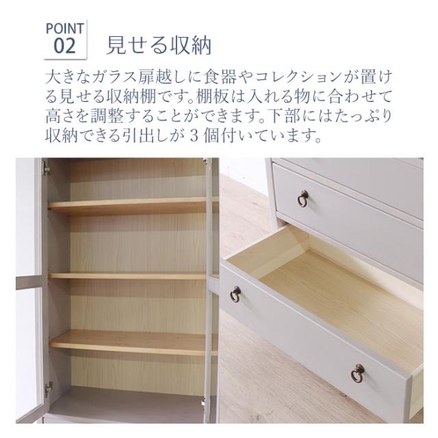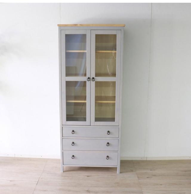 キャビネット 北欧調 幅80cm カップボード アンティーク調 組立品 収納棚 ラック キッチン 収納ボックス グレー ホワイト 欧米 パイン材 ダイニング おしゃれ 天然木(代引不可)【送料無料】