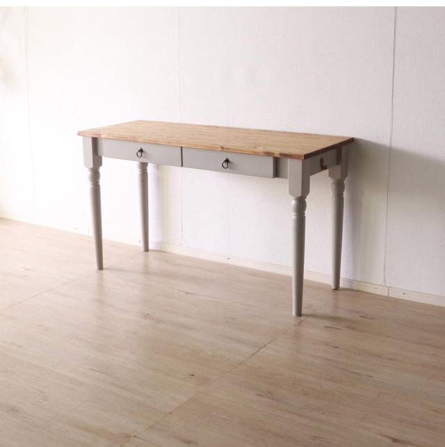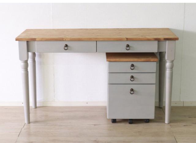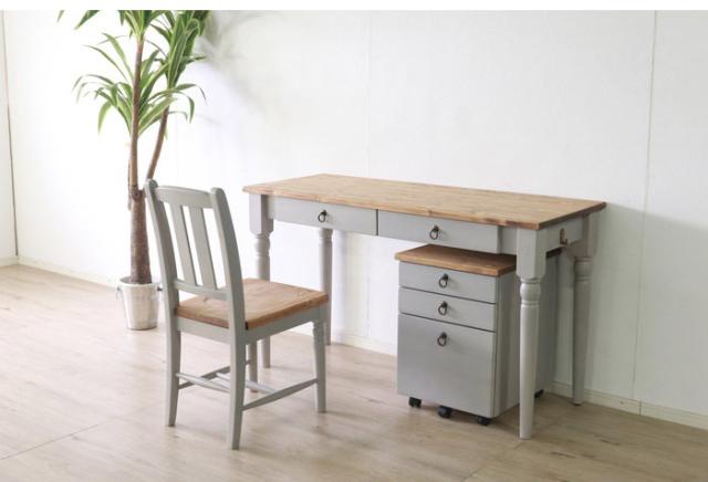 デスク 北欧調 幅130cm パソコンテーブル アンティーク調 組立品 学習机 ワークデスク グレー ホワイト 欧米 パイン材 ダイニング おしゃれ 天然木 無垢 木製(代引不可)【送料無料】