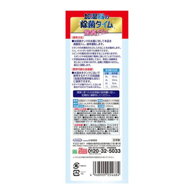 UYEKI 除菌タイム 液体消臭プラス 1000ml 加湿器 消臭 柿渋 空気清浄機 人気 掃除タンク トレー ぬめり ヌメリ 臭い 掃除用品 対策 加湿 潤い お掃除 洗浄剤 入れるだけ 効果【送料無料】