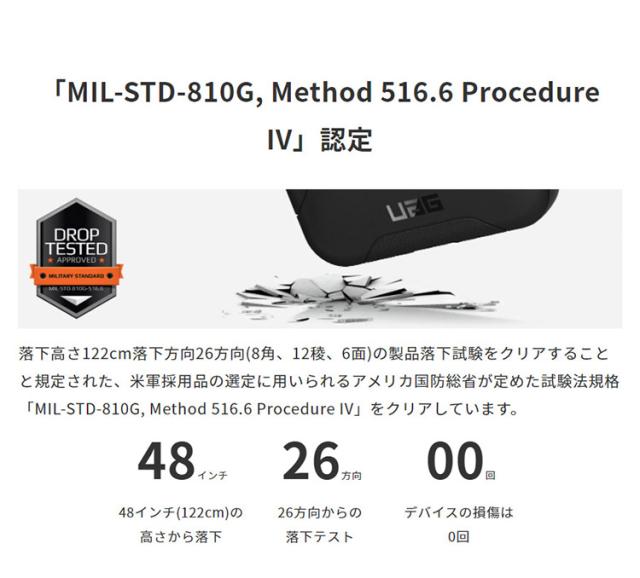 UAGはあらゆるシーンにおいて、あなたの大切なモバイルデバイスを安全で快適に使えるよう、「優れた耐衝撃性」