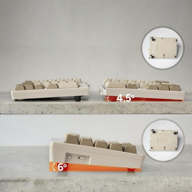 キースイッチにはGateron G Proの茶軸(タクタイル)・青軸(クリッキー)・赤軸(リニア)、CHERRY MXの静音赤軸(リニア)・クリア軸(タクタイル)を採用し、好みの打鍵感の物を選択できます。
