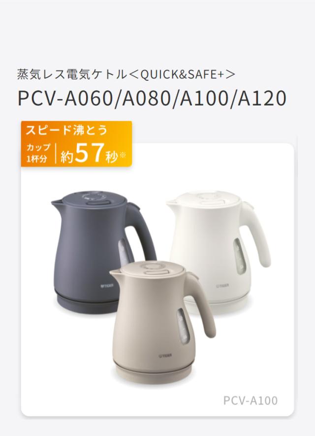 蒸気レス電気ケトル 1L マットホワイト タイガー魔法瓶 タイガー TIGER PCV-A100WM スピード沸とう QUICK&SAFE+ 安全設計【送料無料】