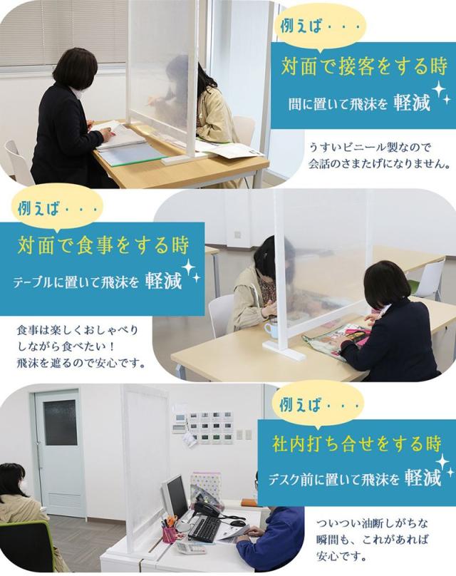 人が対面になる場所ならどこにでも簡単に設置できる飛沫ガードパネル。