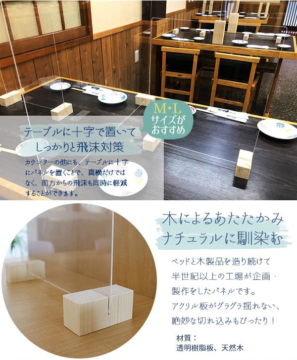 【飲食店向け】飛沫ガードパネル(M) 低め