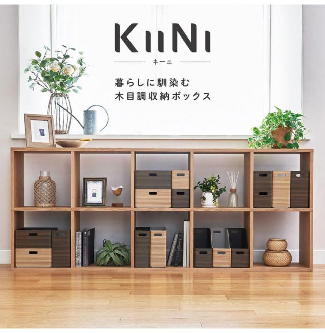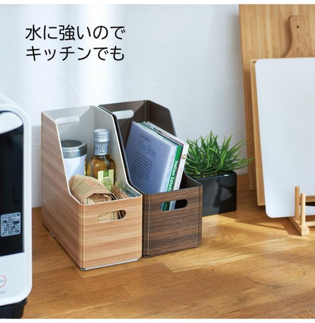 暮らしに馴染む木目調の樹脂製収納ボックス。軽くて丈夫な発泡PP製なので、しっかりとした作りでスタッキングも可能です。組み立てには工具も接着剤も不要。使わない時には薄くたたんでしまっておくこともできるので便利です。