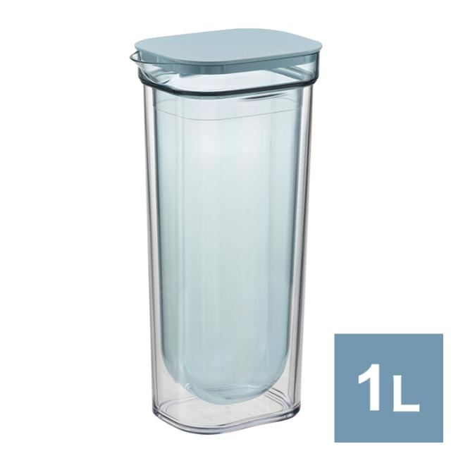 ダブルウォールカラフェ 1L ブルー リッチェル 冷水筒 ピッチャー 二重構造 ダブルウォール 結露防止 クリア シンプル おしゃれ ドアポケット スリム パッキンレス 冷たさキープ 冷水(代引不可)【送料無料】