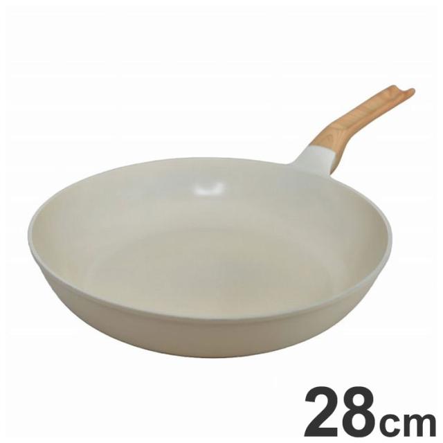 フライパン 28cm IH対応 セラミックコート PFOAフリー セラミックコーティング セラミック ホワイト WH 木柄 ナチュラル(代引不可)