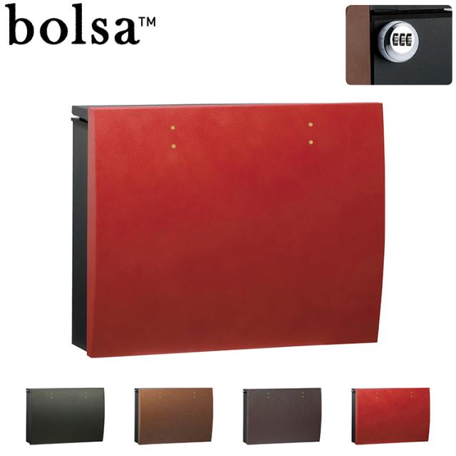 ボルサ ブラック(BK) レザー ダイヤル錠 メール便ポスト 郵便ポスト 郵便受け 新聞入れ ポスト 簡易ロック 壁付けポスト 日本製(代引不可