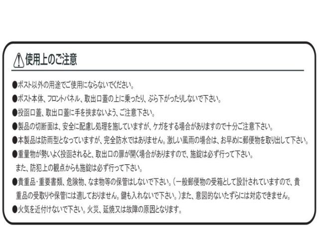 郵便物を取り出した後は必ず蓋を閉めてく施錠して下さい
