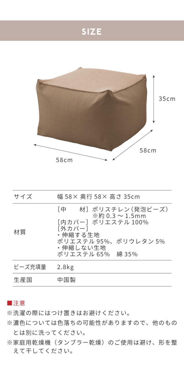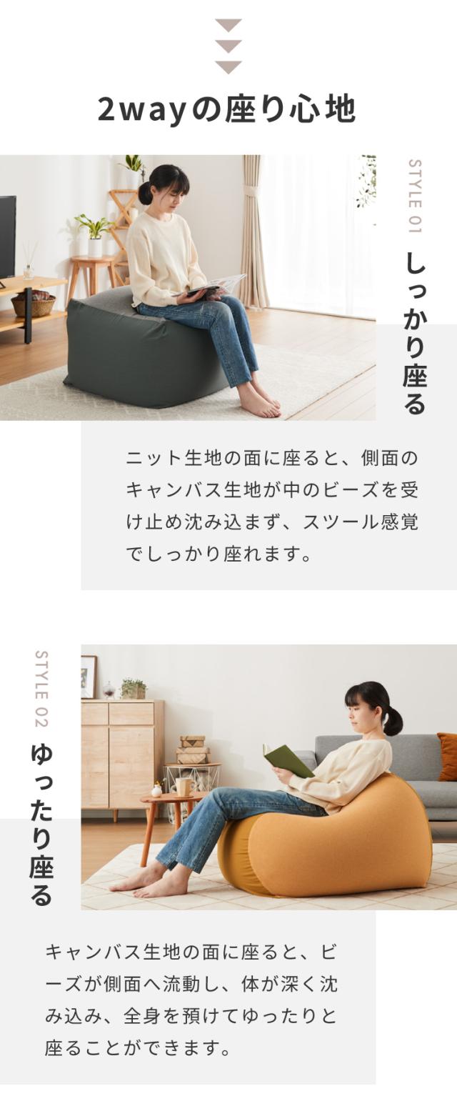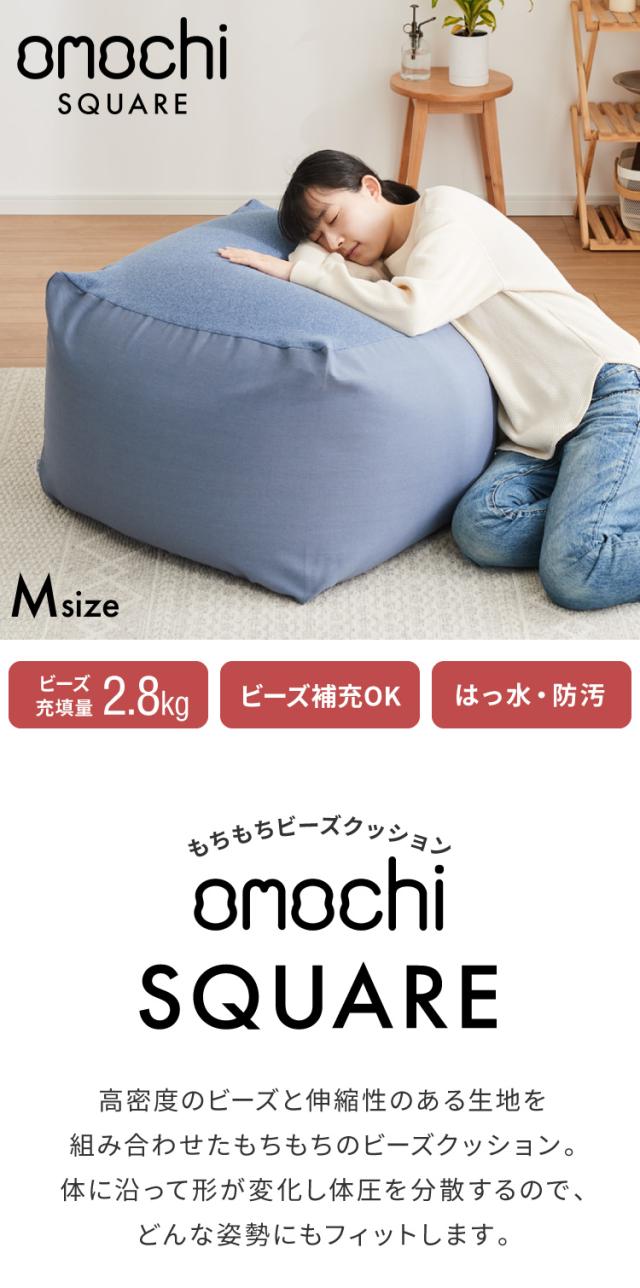 ビーズクッション キャンバス生地 58×58×35cm Mサイズ omochi SQUARE 椅子 イス 背もたれ 1人 極小ビーズ カバーリング へたりにくい 低VOC 洗える ソファ フロアソファ【送料無料】