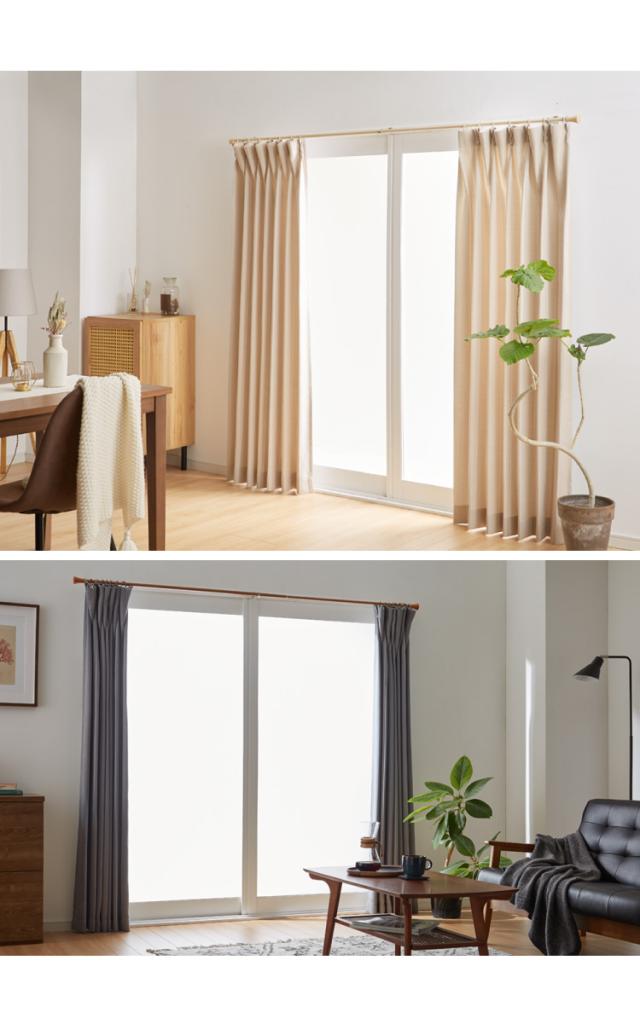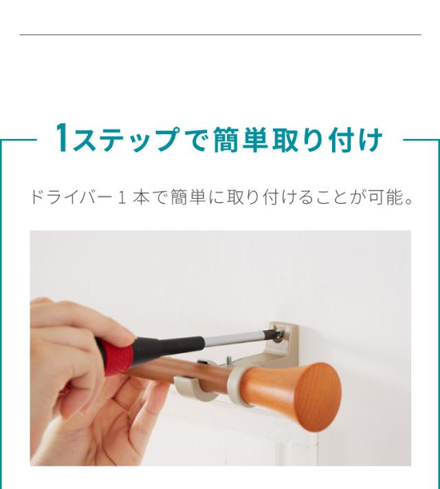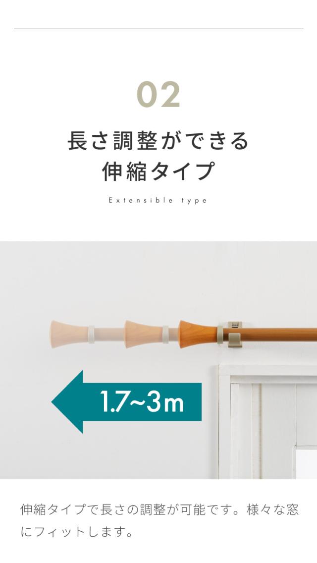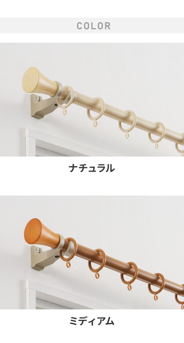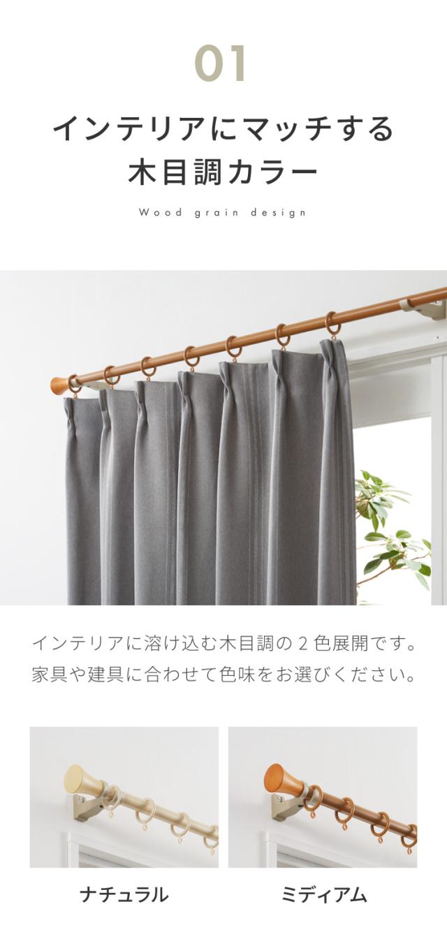 木質の風合いを楽しめる木目調伸縮式ポールタイプカーテンレール。