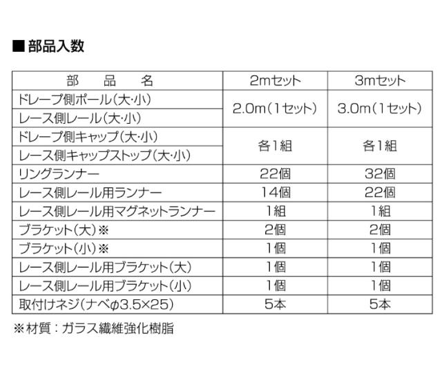 ダブルタイプなので、ドレープカーテン・レースカーテンのどちらも吊るす場合におすすめです。
