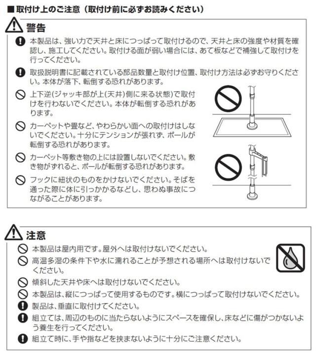 ・つっぱり棒を設置する際は、必ず取扱説明書をよく読んでから設置してください。
