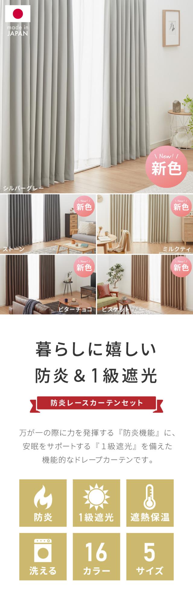 安心安全の日本製防炎ドレープカーテン×日本製防炎レースカーテンの4枚セット!※幅150cmは2枚セットになります。