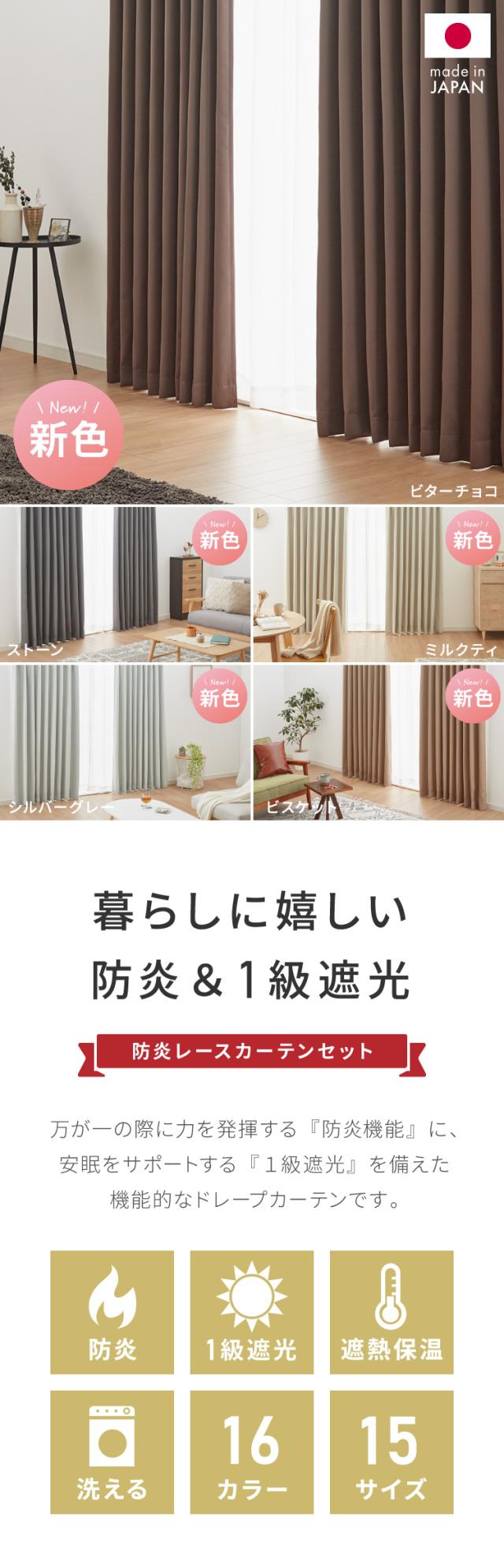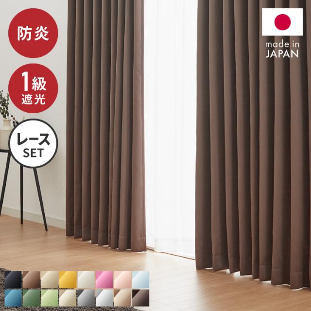 カーテン 4枚セット 2枚セット 1級遮光カーテン レースカーテン付き 日本製 幅100 幅150 15サイズ 防炎 タッセル付き 4枚セット 2枚セット 遮熱 保温 節電 省エネ 4枚組 2枚組(代引不可)【送料無