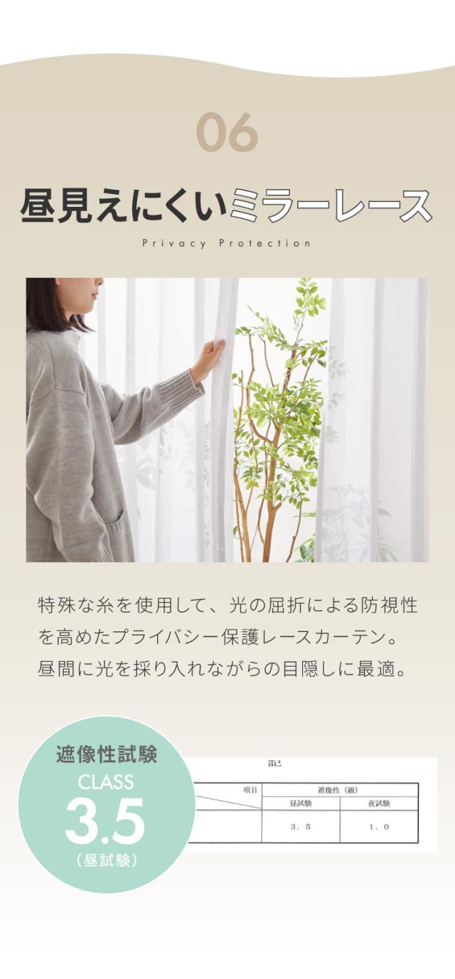 レースカーテンは、ミラー加工によりプライバシーを確保します。