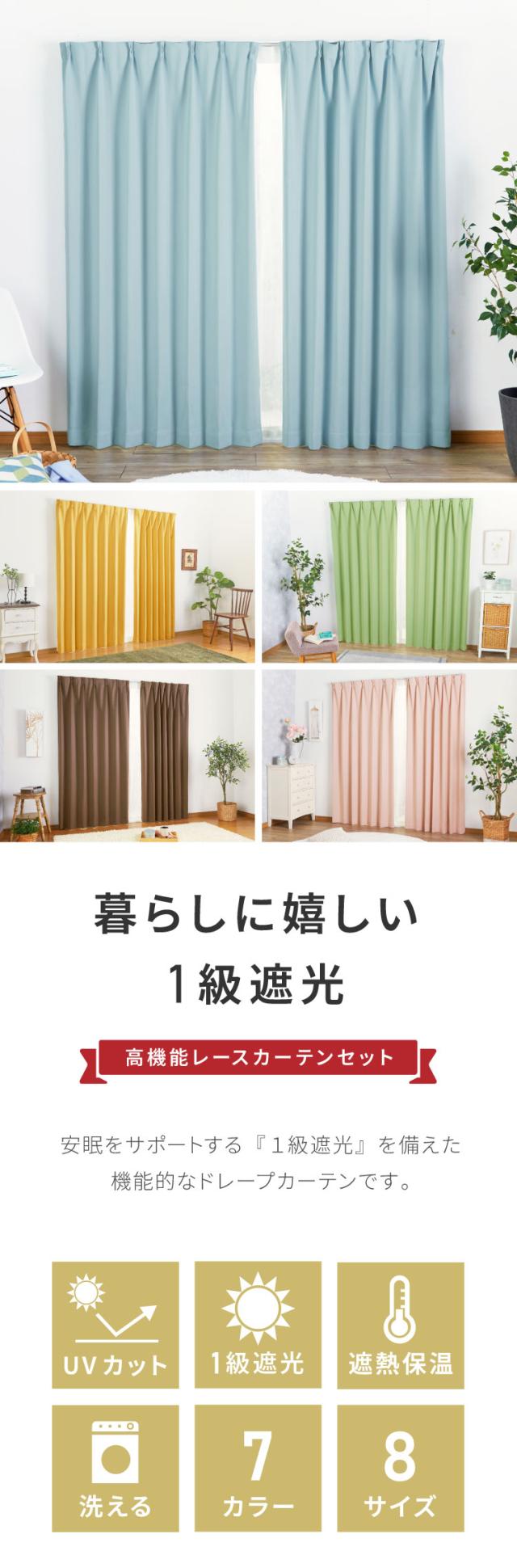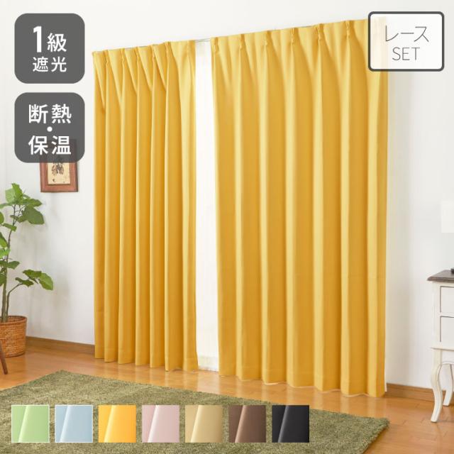 1級遮光カーテン 4枚セット 2枚セット 幅100 幅150 8サイズ 高機能レース カーテン レースカーテン付き 遮光 遮熱 UVカット ミラーレースカーテン 紫外線 保温 節電 省エネ 遮像 プライバシー 防