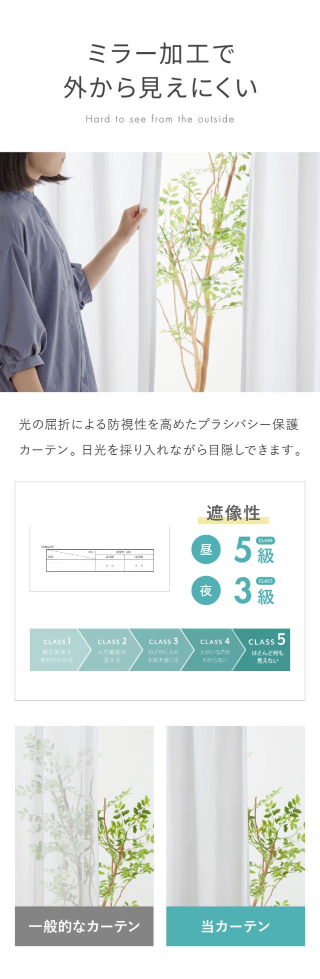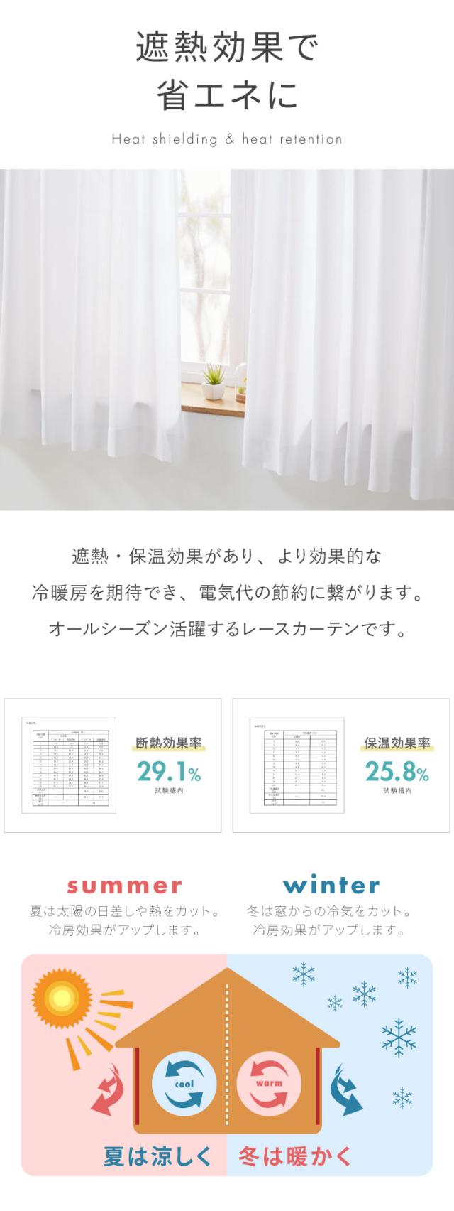 UVカット91.2%、遮熱29.1%、保温25.8%、ミラー加工(レースカーテン)