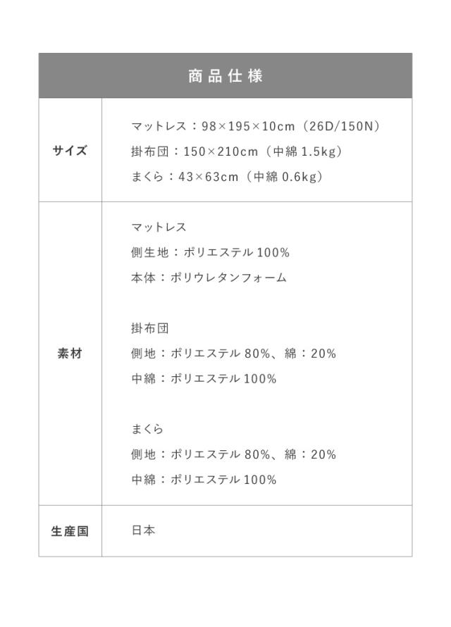 布団3点セット/シングル | 布団3点セット/シングル 洗濯OK | |