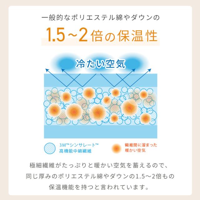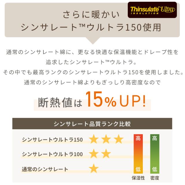 2層目にシンサレートウルトラ150が全面に貼られているので、さらに熱が逃げるのを防ぎ、暖かい。
