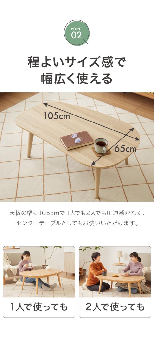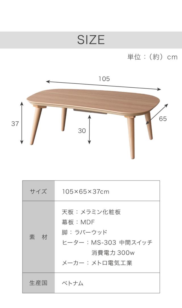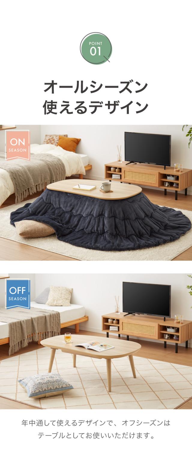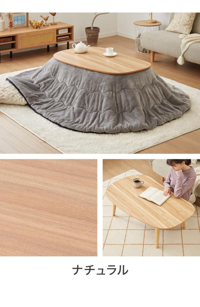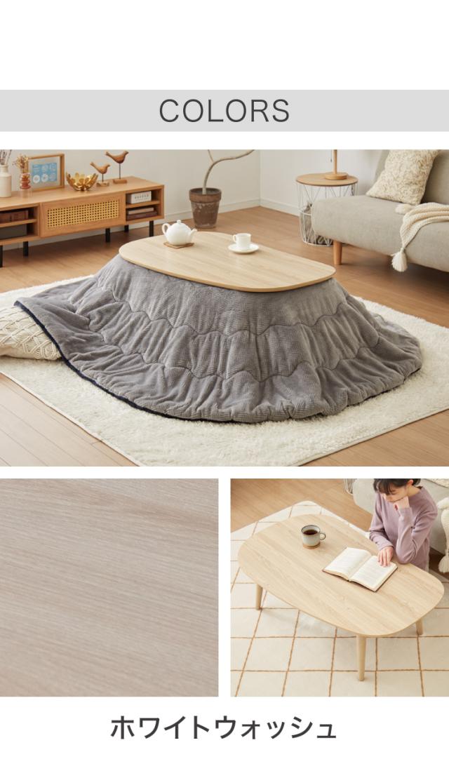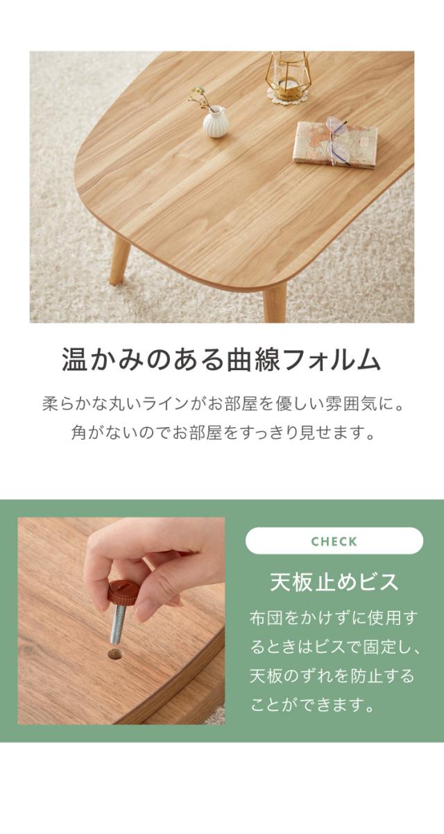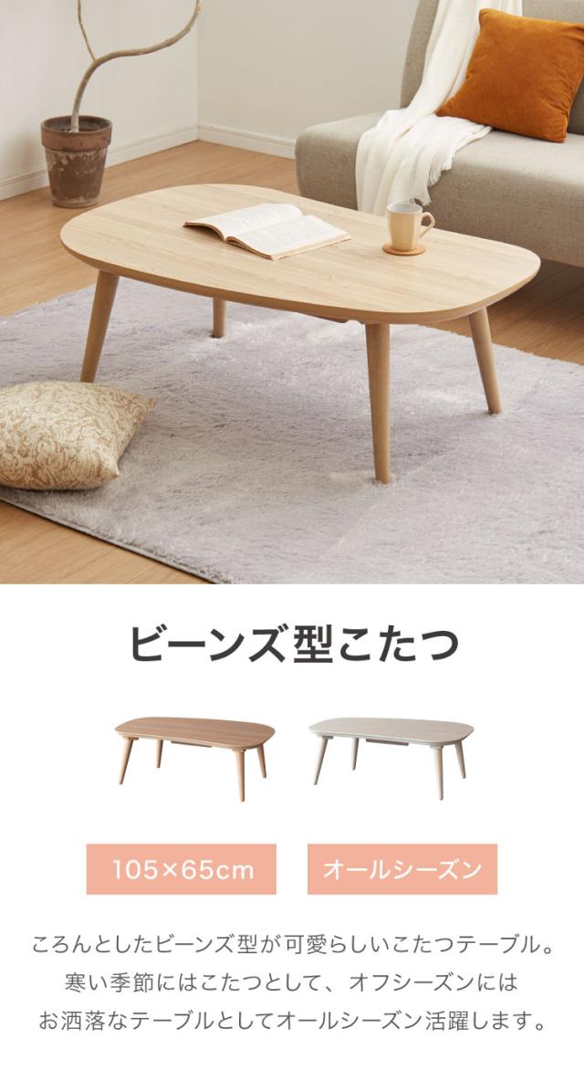 ビーンズ型 家具調こたつ こたつテーブル 105×65cm 節電 長方形 楕円形 丸脚 天然木脚 ラバーウッド 炬燵 おしゃれ 木製 北欧 ホワイト ナチュラル 一人暮らし 新生活(代引不可)【送料無料】