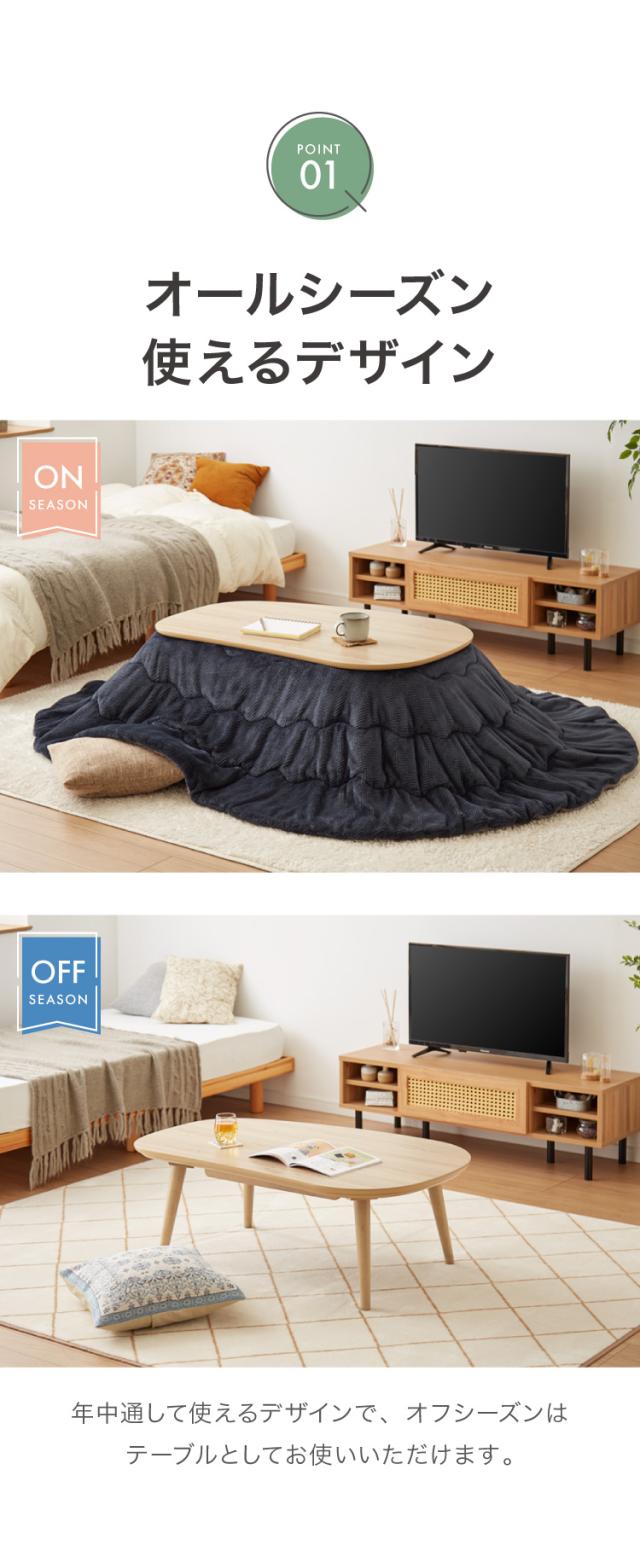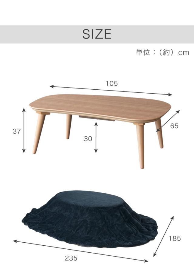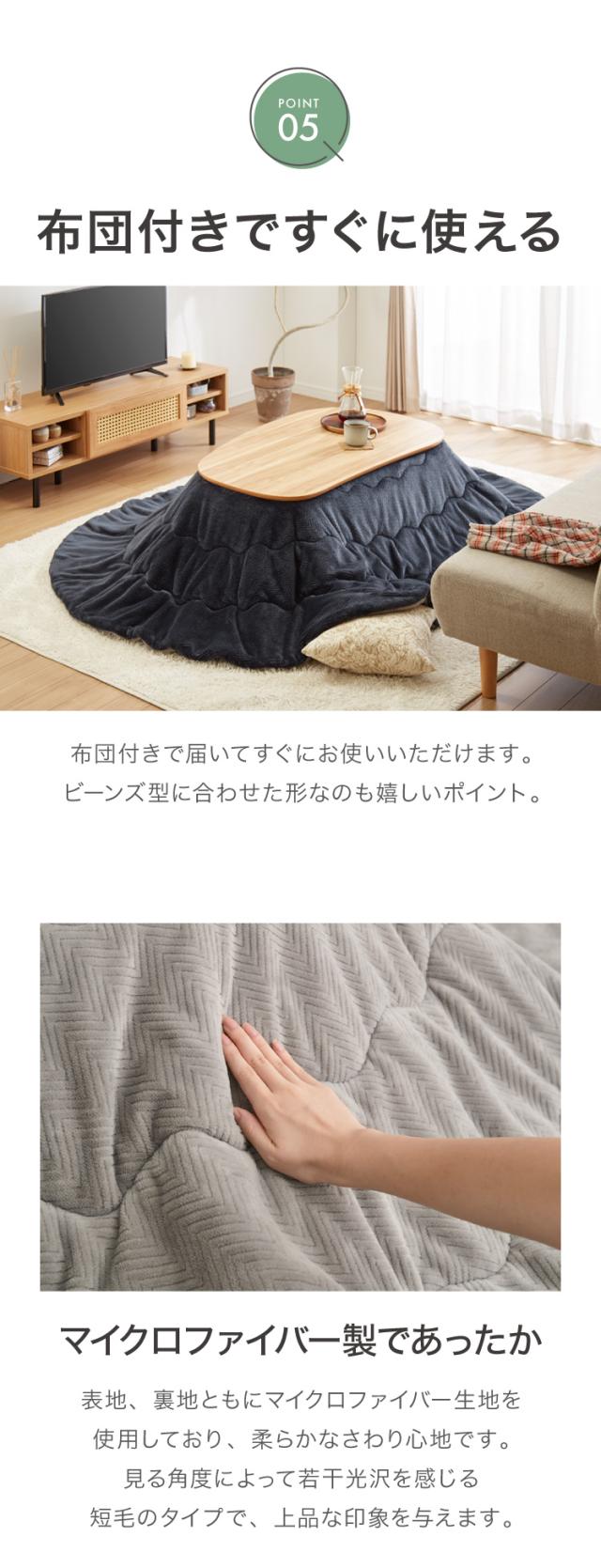 こたつ こたつ布団セット ビーンズ型 105×65cm 木目調 天然木脚 ラバーウッド リビング 一人暮らし 円形 丸形 炬燵 炬燵セット おしゃれ 北欧 かわいい 新生活 節電 家具 インテリア 家具調こたつ(代引不可)【送料無料】