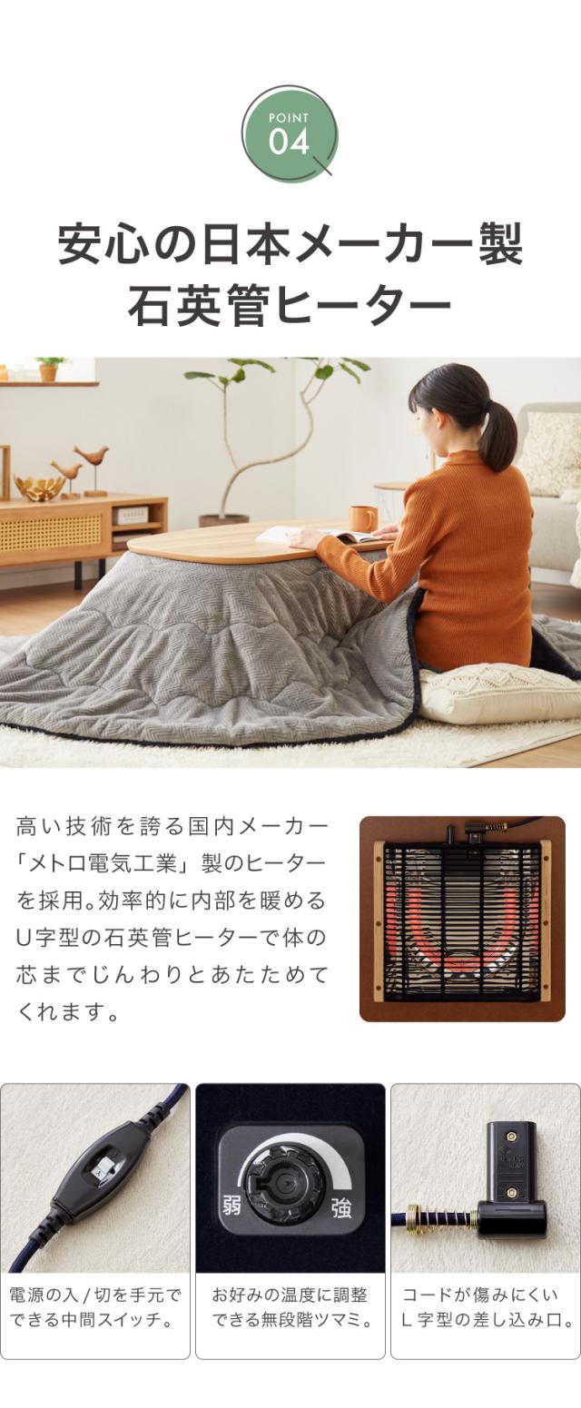 楕円形 105×60cm | 楕円形 105×70cm | 円形 直径85cm フラットヒータータイプ | |