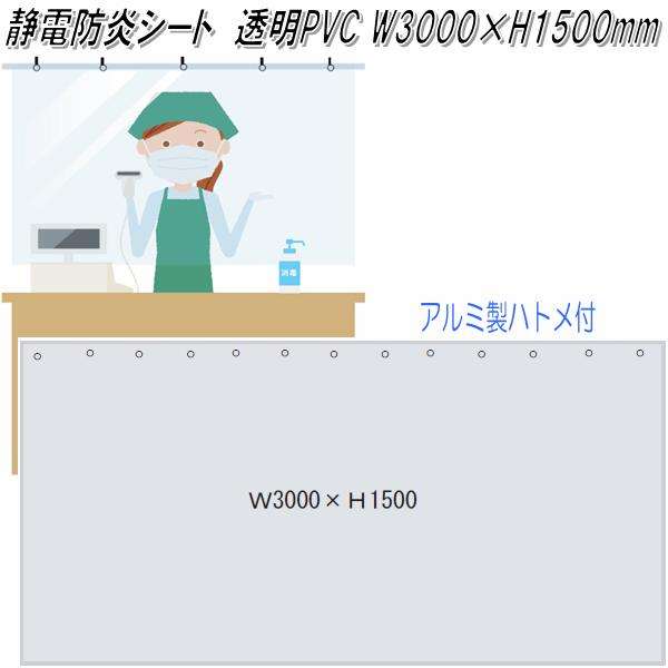 レジ前 飛沫感染対策 静電防炎シート カーテン ハトメ付き W3000×H1500mm【送料無料(北海道・沖縄・離島を除く)】【メーカー直送品】【同梱/代引き不可】【受注生産品】透明ビニールカーテン 透明ビニールシート