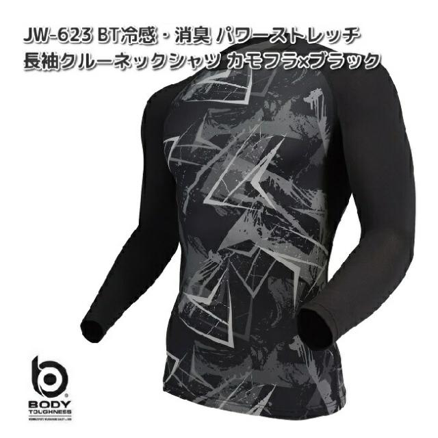 JW-623 冷感 消臭パワーストレッチ 長袖クルーネックシャツ カモフラ×ブラック S〜3L ネコポス対応品2 お取り寄せ商品 おたふく手袋