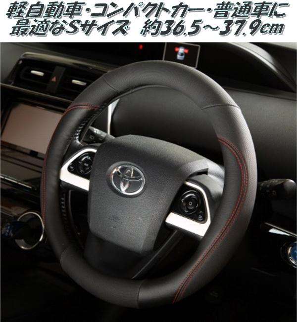 PC-178 ハンドルカバー ディンプル&レザー 太巻きタイプ ブラック/レッドステッチ Sサイズ