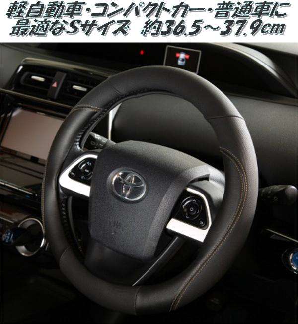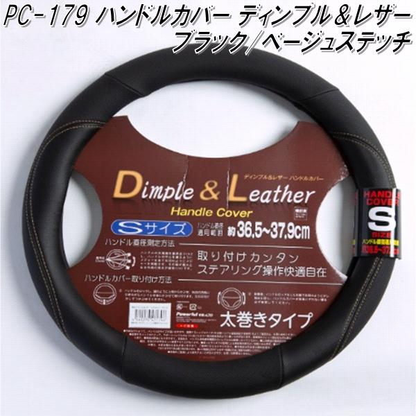 PC-179 ハンドルカバー ディンプル&レザー 太巻きタイプ ブラック/ベージュステッチ Sサイズ【お取り寄せ商品】【ステアリングカバー ハンドルカバー】
