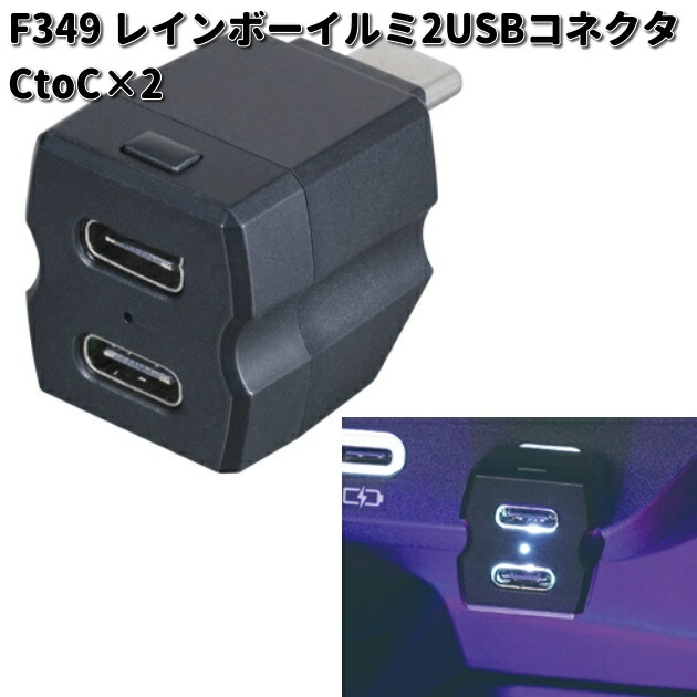 セイワ F349 レインボーイルミ2USB コネクタ CtoC×2 10色LED F-349【お取り寄せ商品】SEIWA カー用品 USBポート ライト ランプ 灯り イルミ ムードランプ