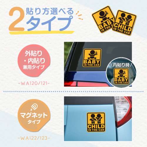 ■セイワ WA121 セーフティーサイン CHILD IN THE CAR 外貼り / 内貼り兼用タイプ WA-121