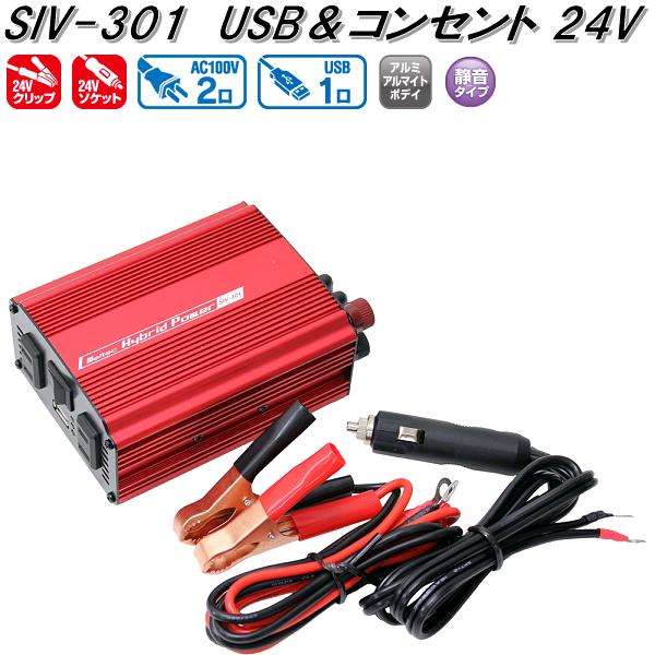 大自工業 SIV-301 USB&コンセント 静音タイプ インバーター DC24V 300W 2.4A SIV301【お取り寄せ商品】トラック用品 インバーター