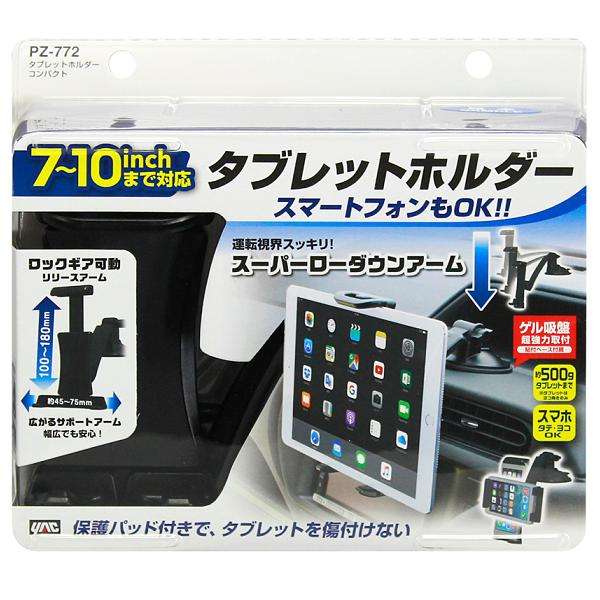 槌屋ヤック PZ-772 タブレットホルダーコンパクト PZ772【お取り寄せ商品】【車用 カー用 タブレット 携帯電話 スマホ スマートフォン iPhone ホルダー スタンド 固定】