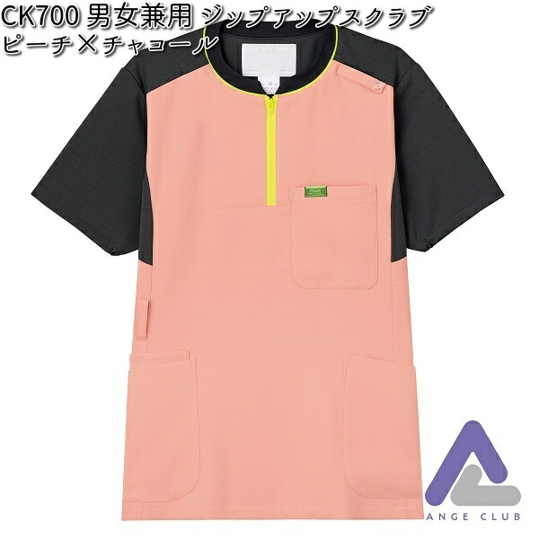 ■CK700-3 男女兼用 ジップアップスクラブ ピーチ×チャコール 3S?4L