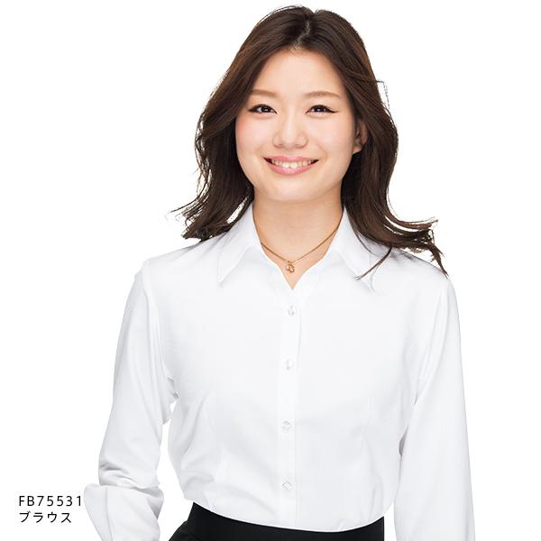 ■FB75531-1 ブラウス ポーチ付 長袖 ホワイト