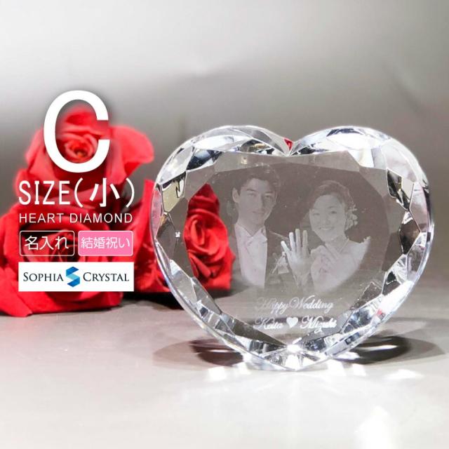 クリスタル ハートダイヤ DR-2C(小) ガラス オブジェ 結婚式 ブライダル ウエディング 名入れ 記念品 結婚祝い ペーパーウェイト 文鎮 オリジナル ギフト 名前入り プレゼント